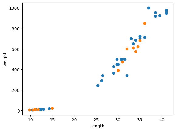 아까 테스트했던 도미 데이터를 다시 한번 확인해 보자!