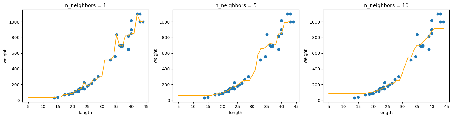 # k-최근접 이웃 회귀 개체를 만듭니다.