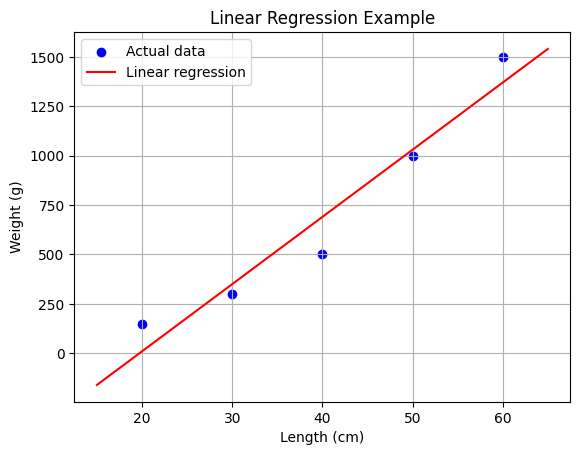 그럼 여기서 길이가 100cm인 농어의 무게를 예측한다면? 어떤 값이 나올까?