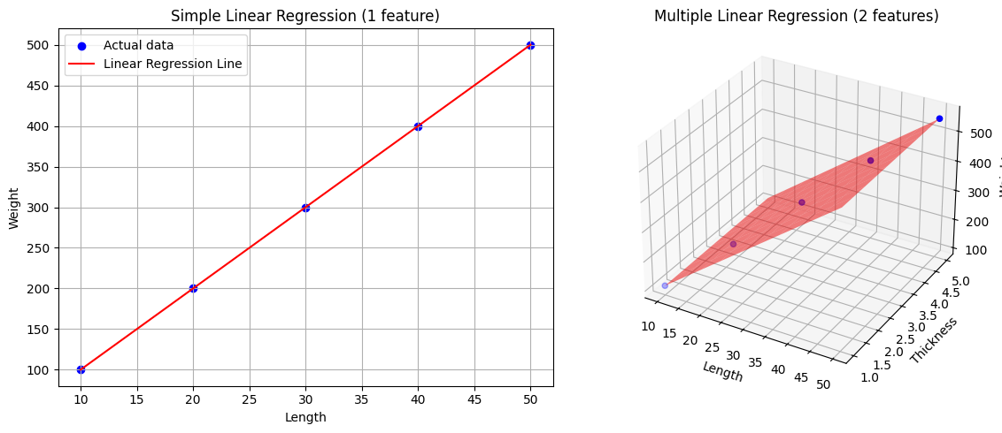 다중 회귀는 길이, 두께, 높이 등의 특성을 종합해서 예측한다.